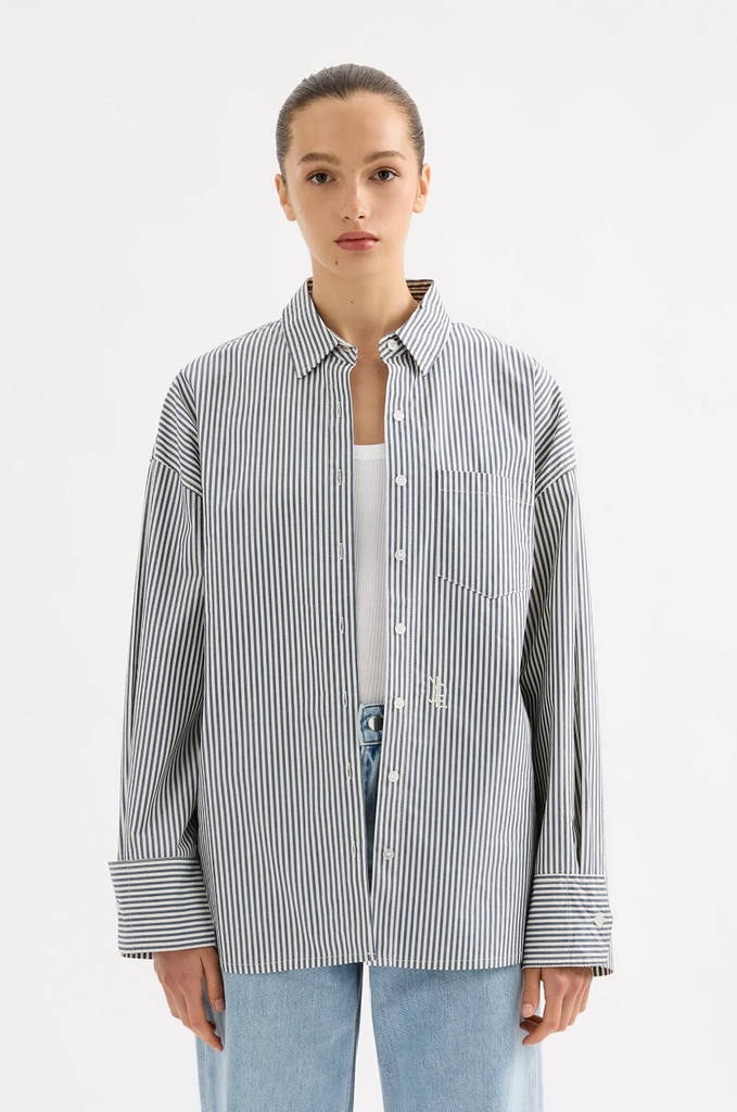 The Organic Poplin Shirt is made from a organic cotton poplin which has be washed for a smooth, crisp hand feel. The silhouette is oversized throughout with length finishing on the hips. Features include front patch pockets, a large cuff and Nude Lucy branded buttons.