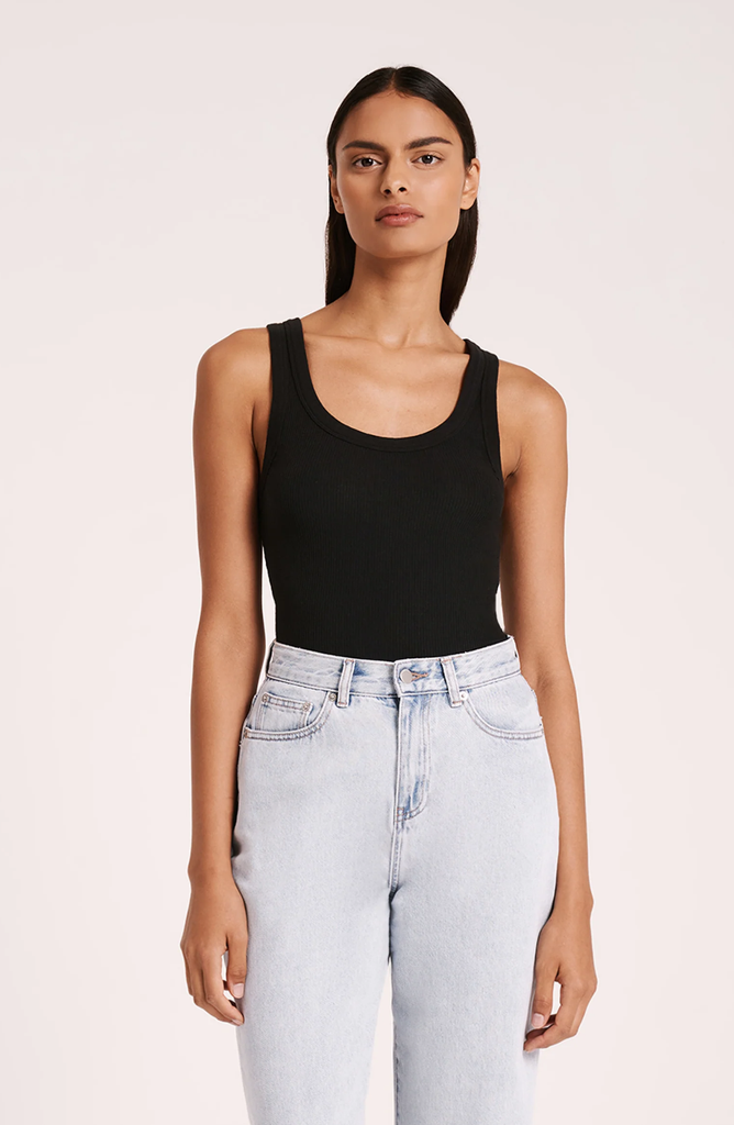 The Organic Rib Singlet by Nude Lucy is a key piece to add to your basics wardrobe range. Made from high stretch quality fabric which allows for a figure hugging shape whilst still being breathable and lightweight. The silhouette is a classic slim fitting tank finishing on the hips. Features include thick straps and low scoop neckline.