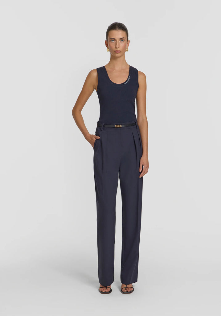 Introducing the Vik & Woods Tank, a fresh iteration of our iconic V&W Tank, designed to be your go-to everyday essential. Crafted from our signature 2x2 organic cotton rib in sapphire, it features a flattering scoop neckline and a fitted silhouette. Finished with contrast Vik & Woods embroidery on the neck bind, this enduring piece fuses effortless style with ultimate versatility.