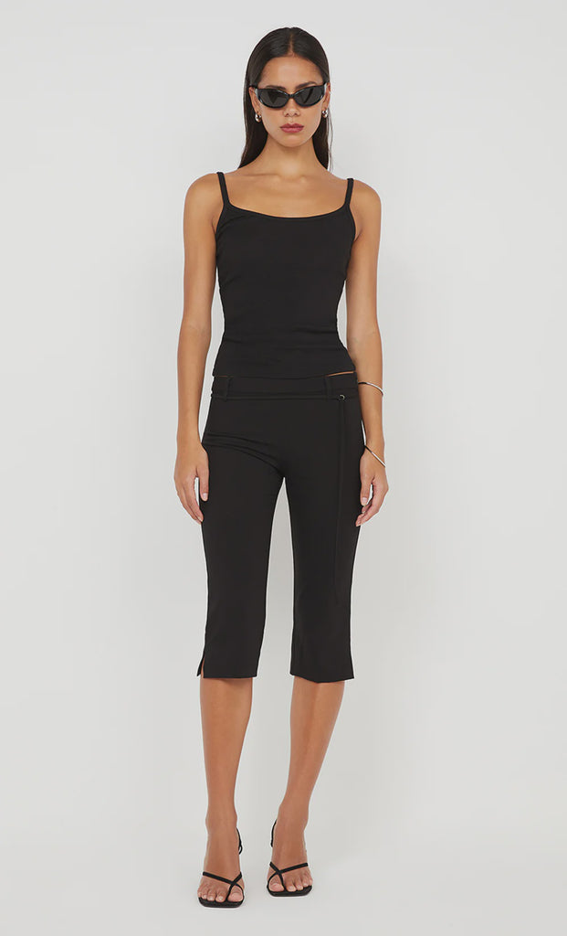 The BEC + BRIDGE Kody Rib Tank in Black is a sleek and fitted singlet crafted from stretchy cotton baby rib fabric. With narrow shoulder straps and a scoop neckline, this tank is designed to skim the silhouette for a flattering fit. It is a versatile wardrobe foundation for everyday wear, pair with BEC + BRIDGE Dafine Capri Pant for a polished look.